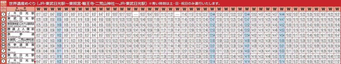 說明一下以上「日光 ⇔ 世界遺產 巡迴線」的各站翻譯: