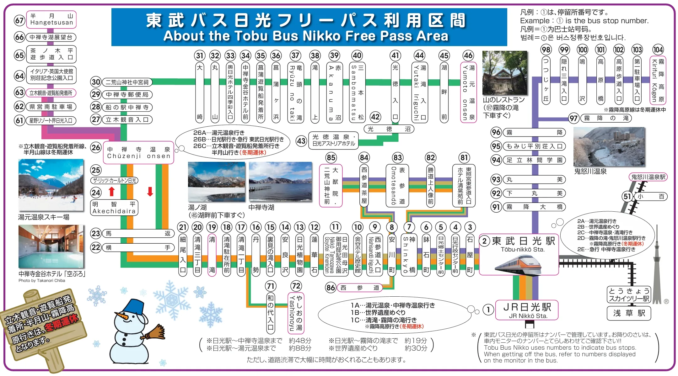 - JR Nikkō Sta.|JR日光站(部分Tobu Bus並不會從這裡發車)